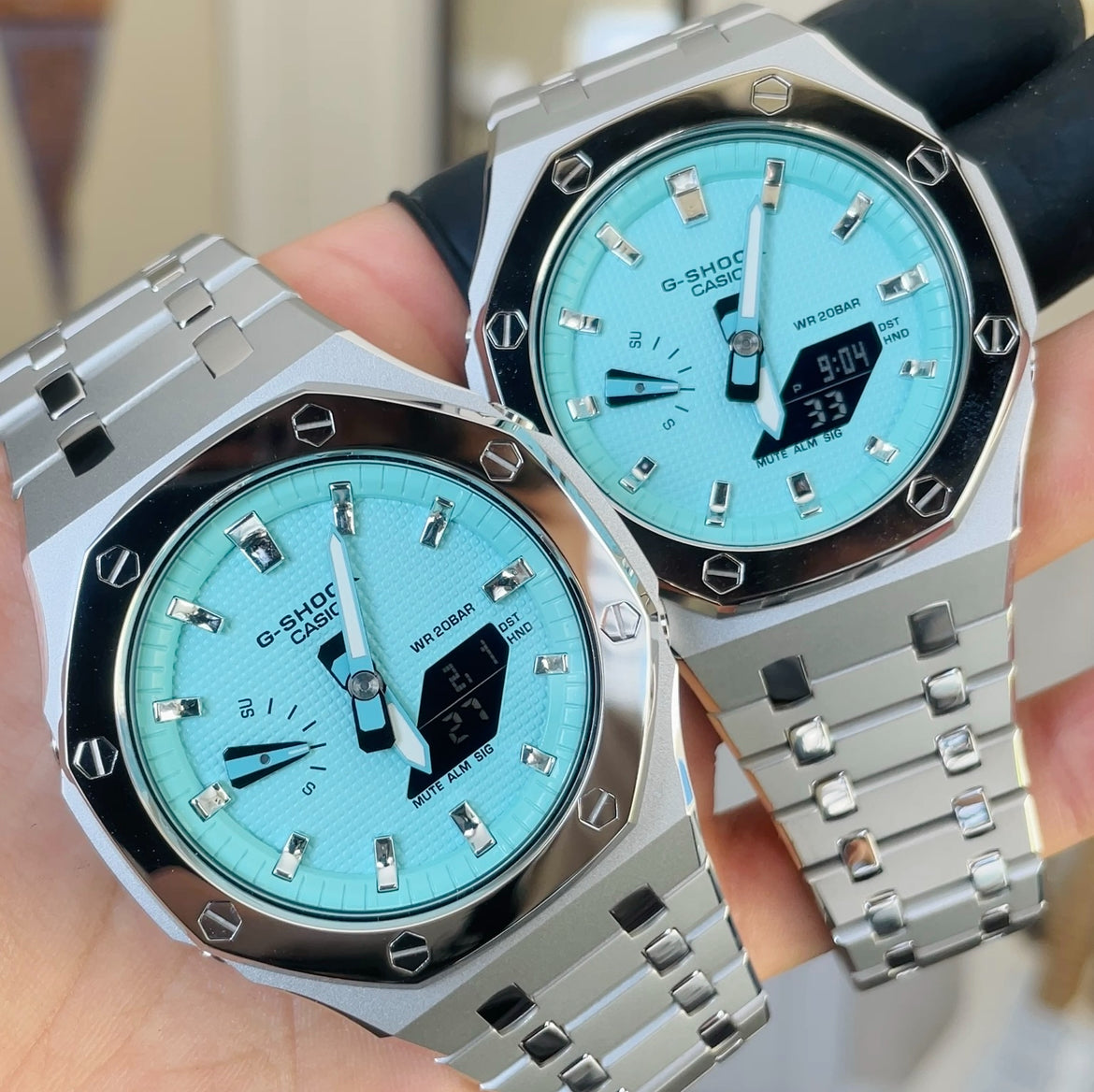 Sold outTIFFANY SKY G-SHOCK CASIOAK GA-2100 METAL MOD - POLISHED BEZEL