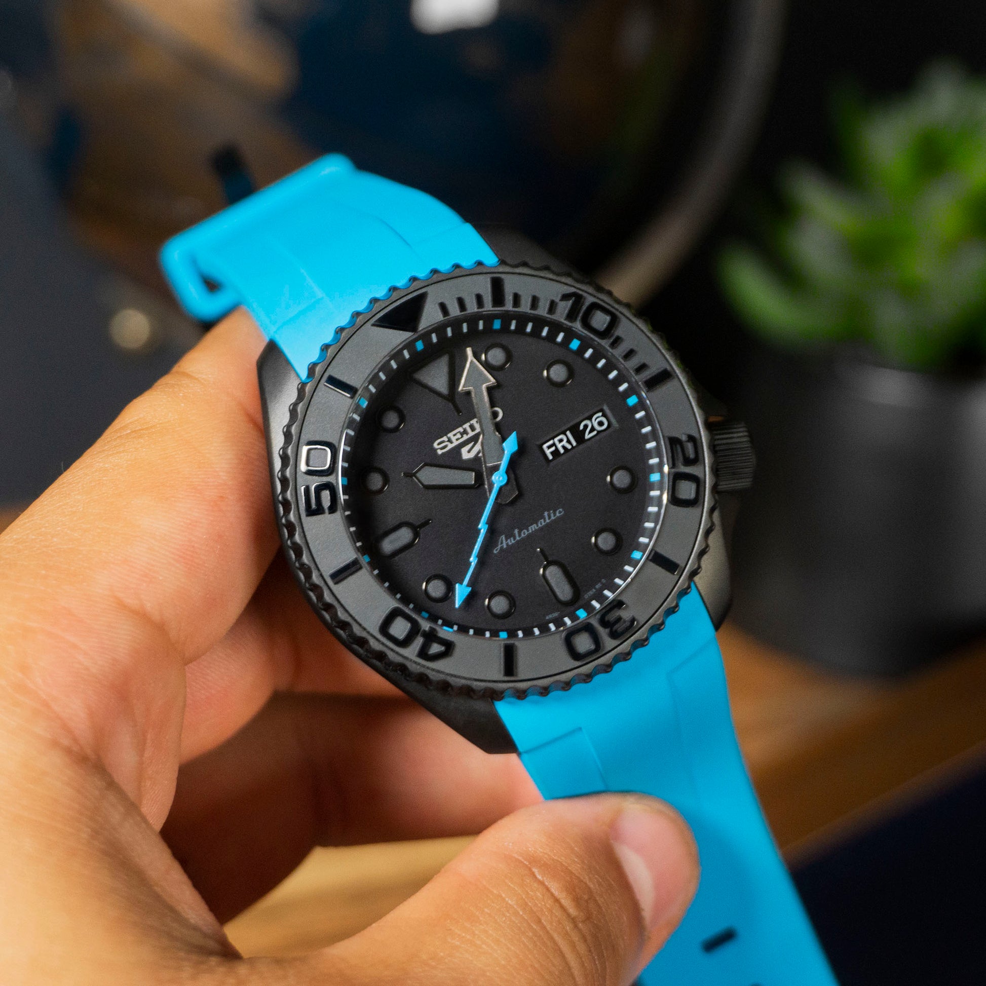 Built on the foundation of a genuine Seiko SRPD, this watch retains the robust 4R36 automatic movement with its dependable 41-hour power reserve. The comfortable FKM rubber strap in eye-catching blue perfectly complements the watch's spirit.